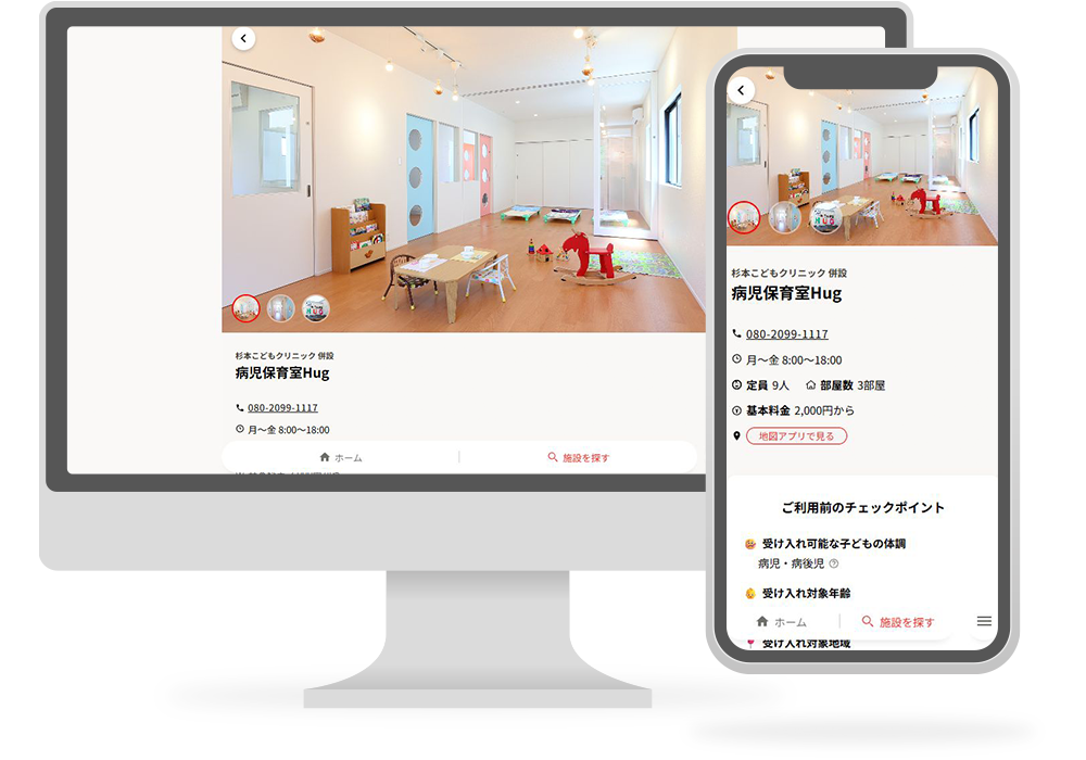 発熱や風邪などで体調がすぐれず、保育園や幼稚園に通うことができないお子さんを一時的にお預かりする制度です。保護者のかたが仕事を休めない場合や、急な体調不良で対応に困ったときに安心して利用できます。医師の診察を受けたうえで、看護師や保育士が体調を見守りながら安全に過ごせる環境を整えています。地域の子育てを支える大切な役割を担っています。