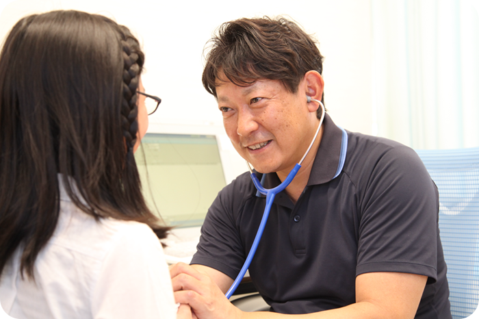 小児科は病気を治すだけでなく、子どもの成長や発達を見守る場所でもあります。健診の際に発達の遅れや気になる行動が見られた場合も、気軽に相談していただけます。お子さん一人ひとりの成長のスピードには違いがあり、不安を抱える保護者のかたも少なくありません。そんな気持ちに寄り添いながら、必要に応じて専門的な医療機関とも連携し、安心して子育てができるようサポートします。