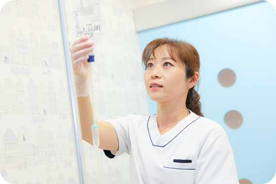 小児科では、看護師・医師・保育士など多職種が連携して診療を行っています。一人で抱え込むのではなく、チームで相談しながら仕事を進められるので安心です。経験の浅いかたでも、先輩が丁寧に指導し、学びながら成長できる体制があります。子どもたちとそのご家族を支える医療だからこそ、スタッフ同士の支え合いを大切にしています。